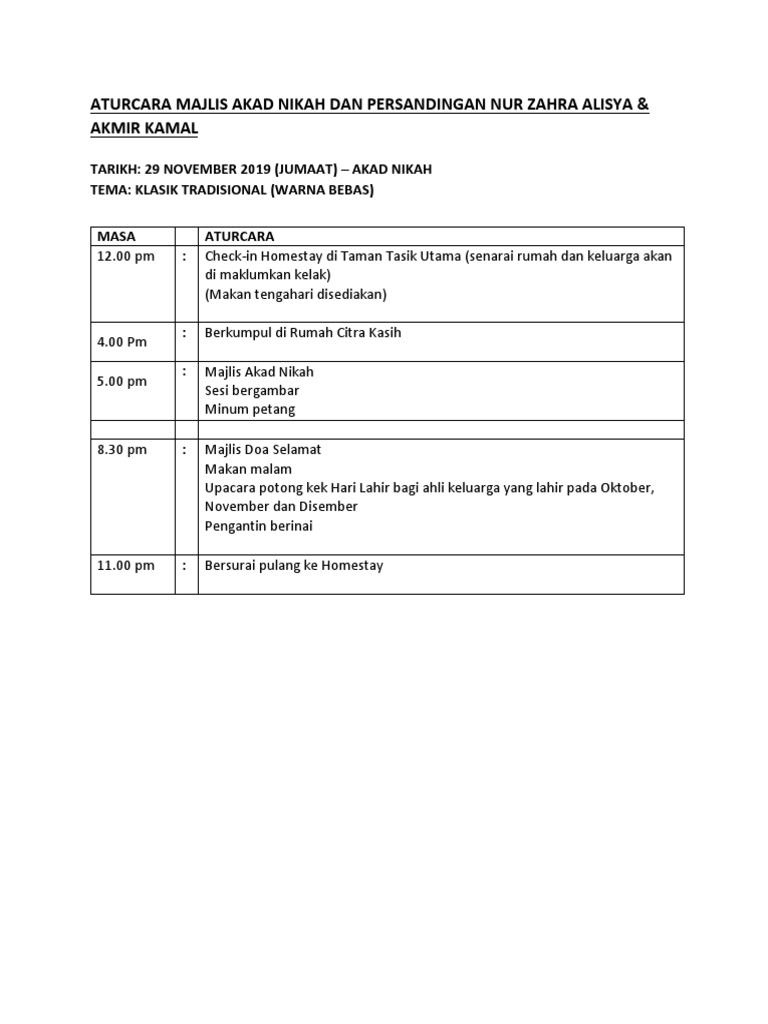 Aturcara Majlis Akad Nikah Alisya Hebahan Kelantan Pdf